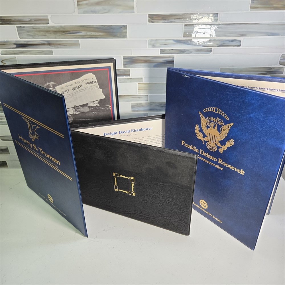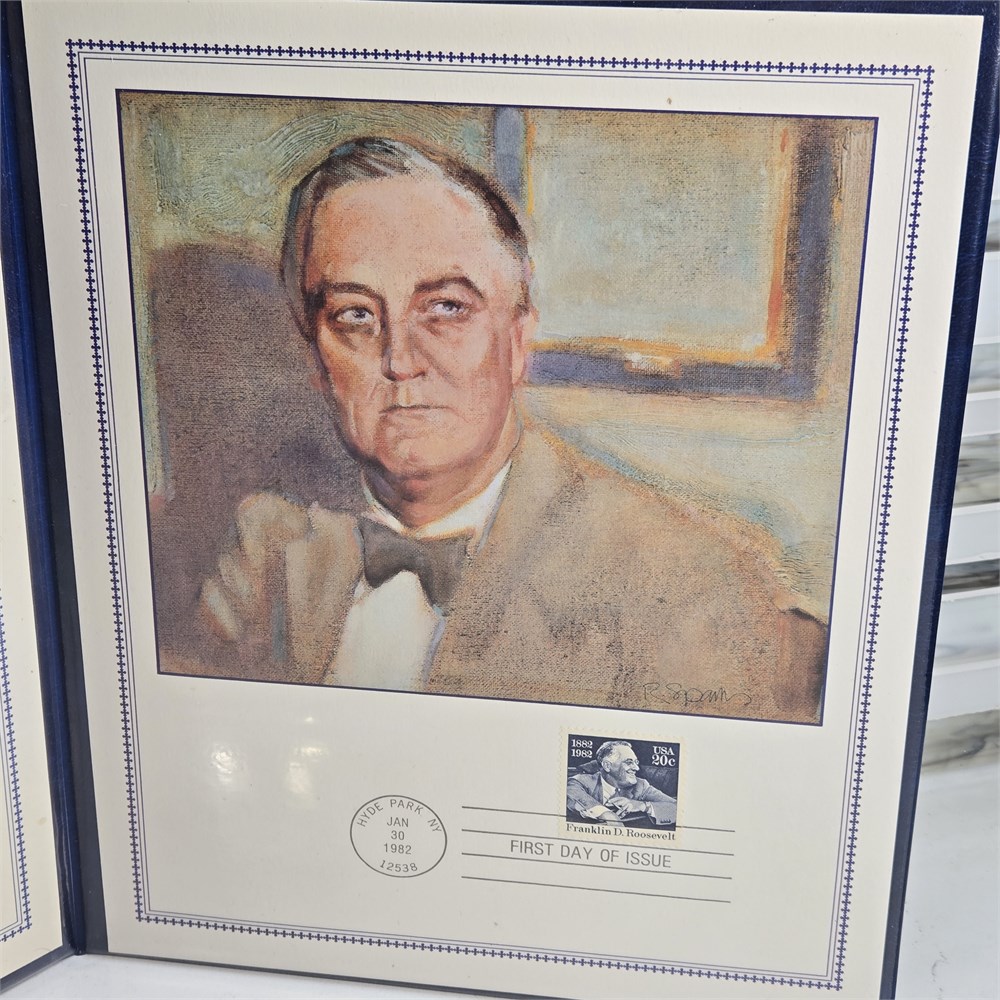 1984 Harry S. Truman 100th Anniversary Commemorative Folio and 1982 Franklin Delano Roosevelt Commemorative Stamps First Day of Issue Cover Set ~ Postal Commemorative Society