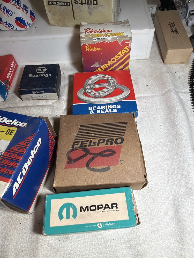 Points and condensers wheel bearings, thermostats, couplers all in the original boxes, Electronic connectors, AC Delco multi power