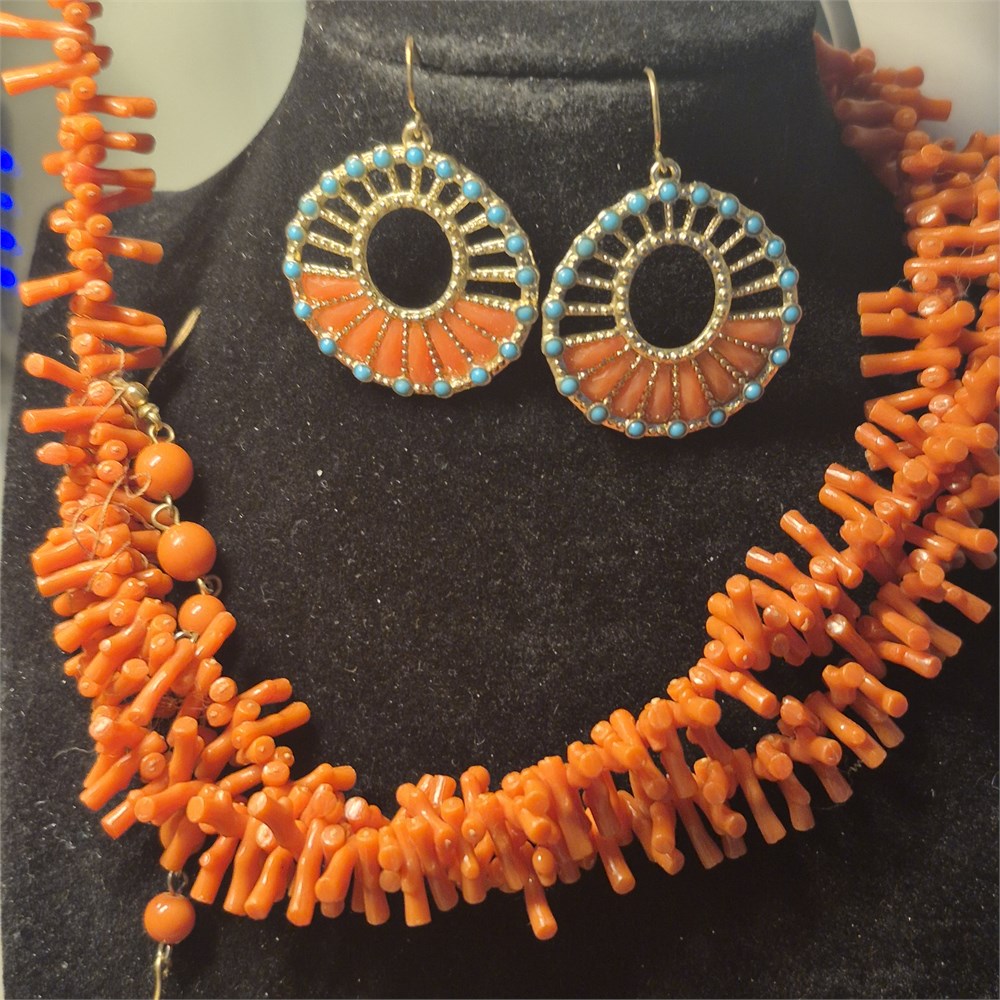 > Necklace, one set orange spike coral w/matching earrings