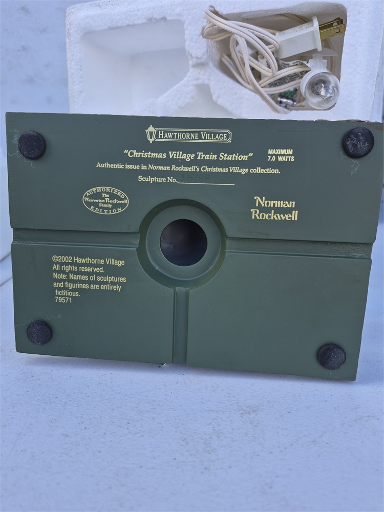 Hawthorne Norman Rockwell’s Christmas Village  “Christmas Village Train Station”. Comes light.