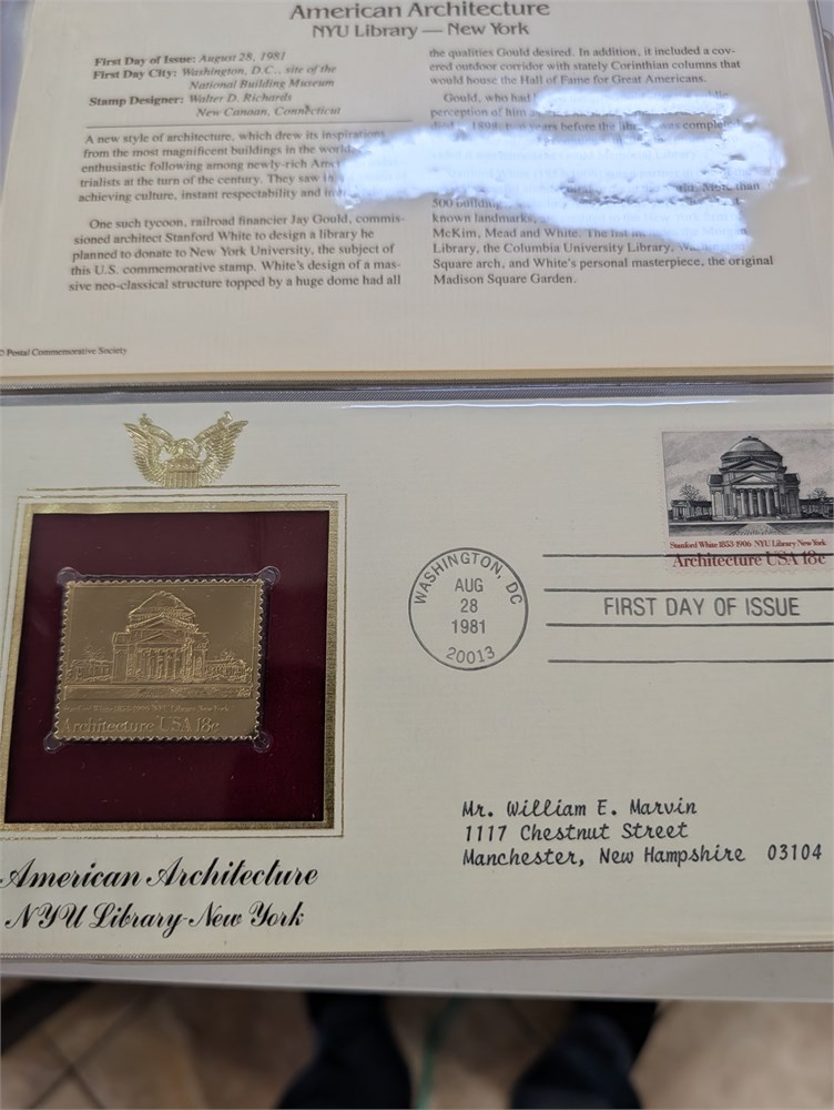 Golden Replicas of US Stamps First Day of Issue Stamps Cover Set