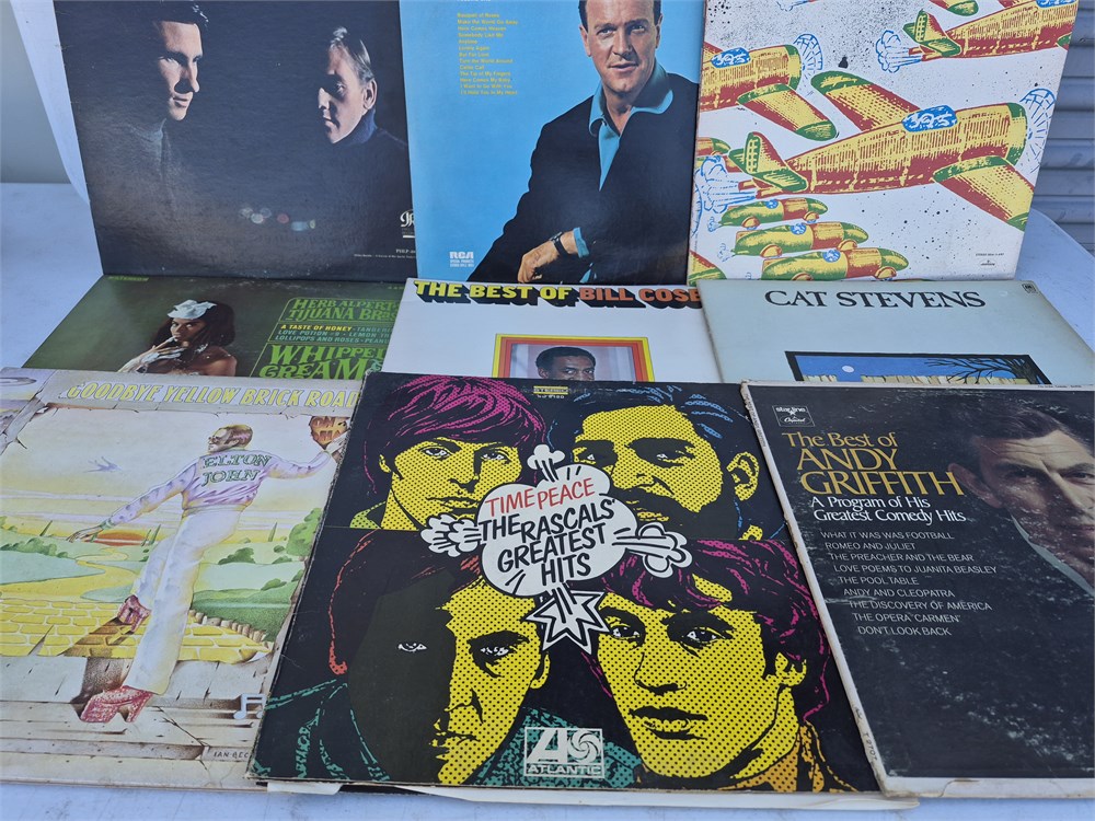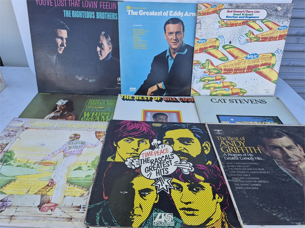 Vintage lot of 9 record albums. Includes Elton John, The Righteous Brothers, Rod Stewart, The Rascals and others.