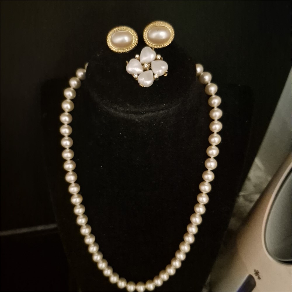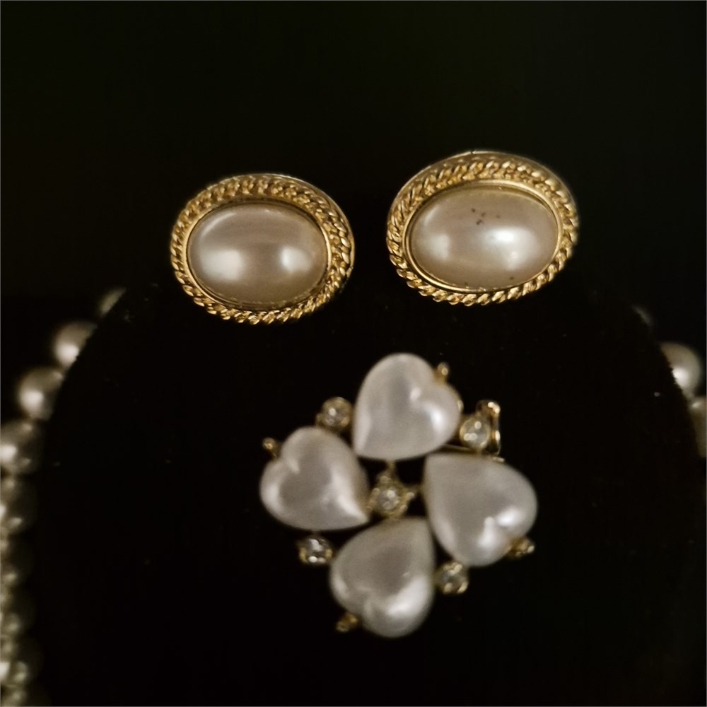 Vintage PEARL Necklace / Earrings / 4 Heart Pin ~ from Medical Conference award