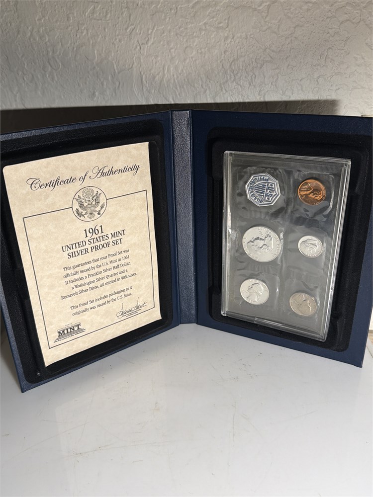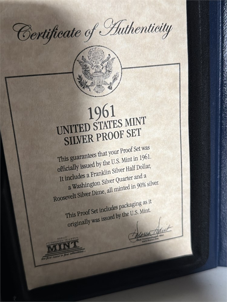 1961 United States silver proof shot in the original box all the paperwork certificate beautiful set very rare to find