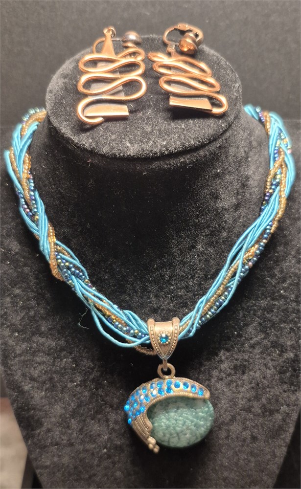 Bohemian Turquoise Rhinestone Necklace & Copper Earrings