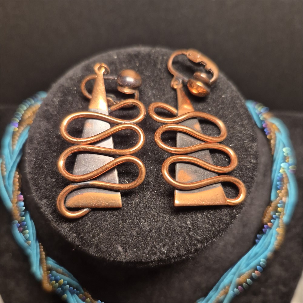 Copper post earrings match ensamble