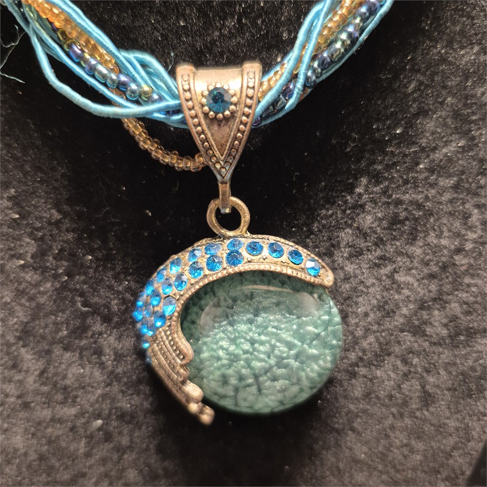 Turquoise blue beaded vintage pendant necklace made of zinc alloy.Lobster clasp closure