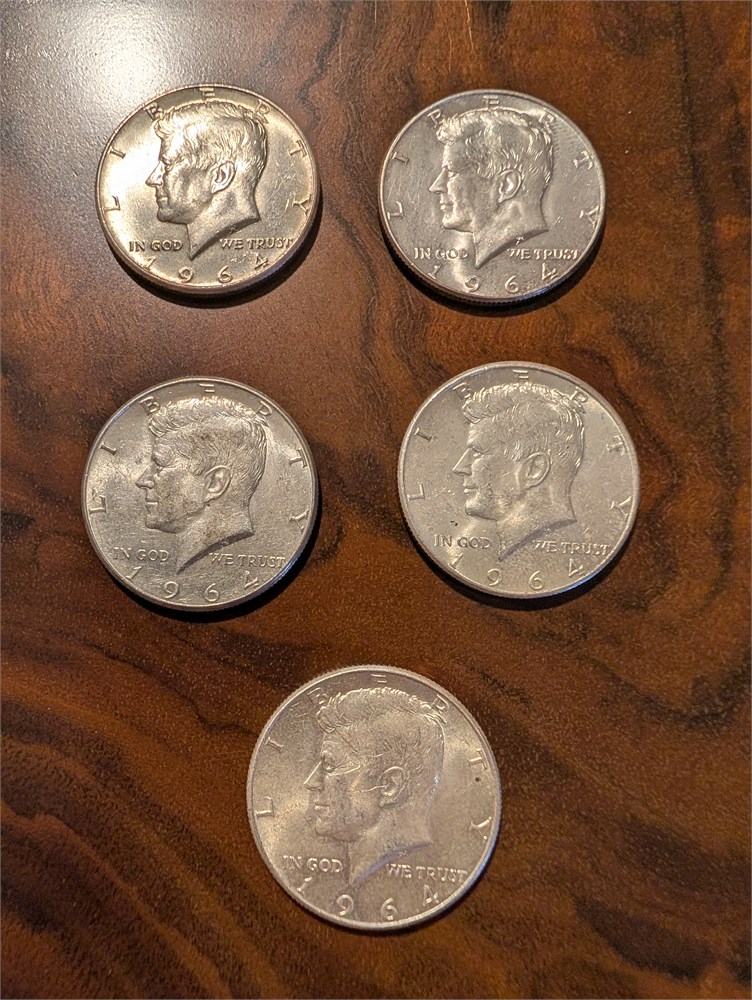5 ~ 1964 Kennedy Half Dollar 90% Silver