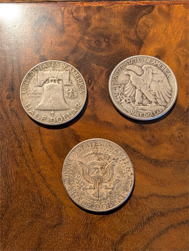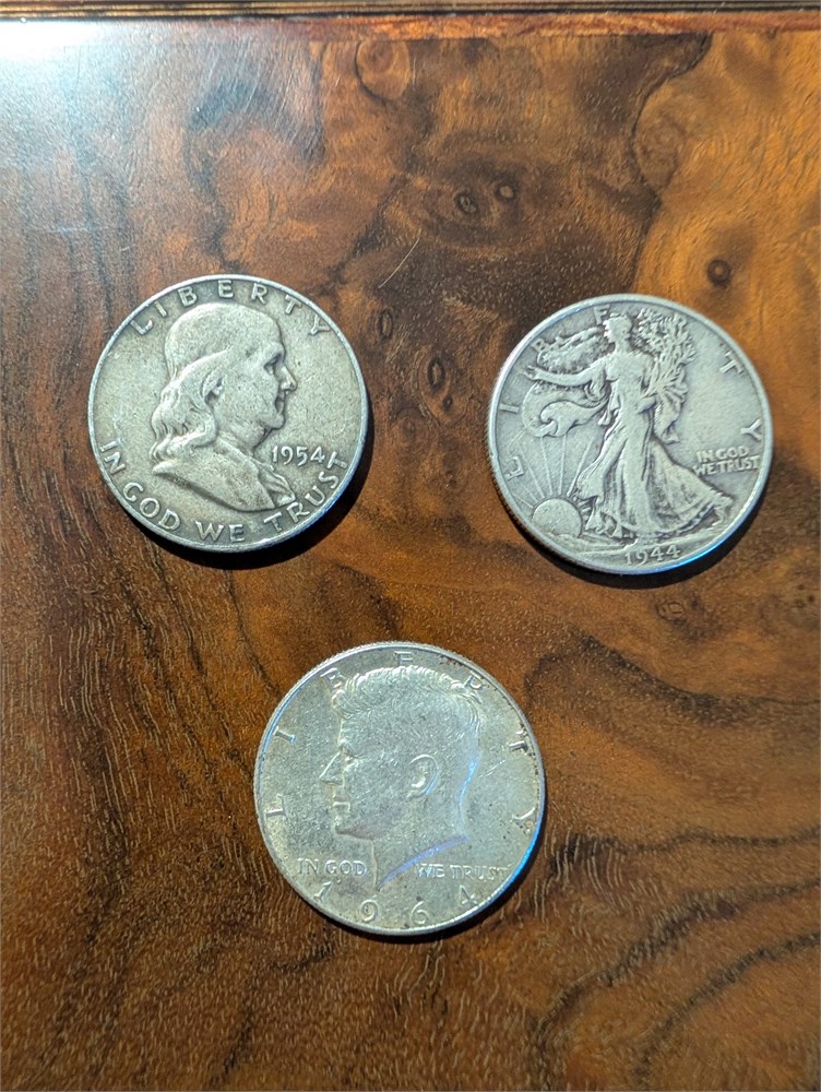 3 ~ Walking Liberty 1944, Ben Franklin 1954, Kennedy 1964