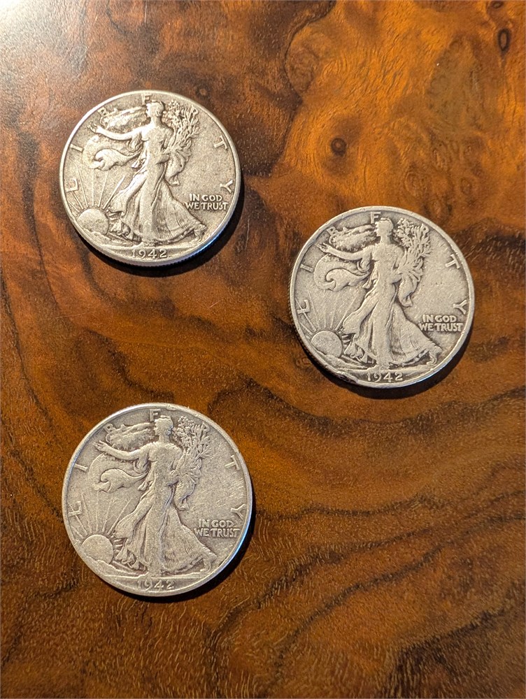 3 ~ 1942 Walking Liberty half dollar 90% Silver