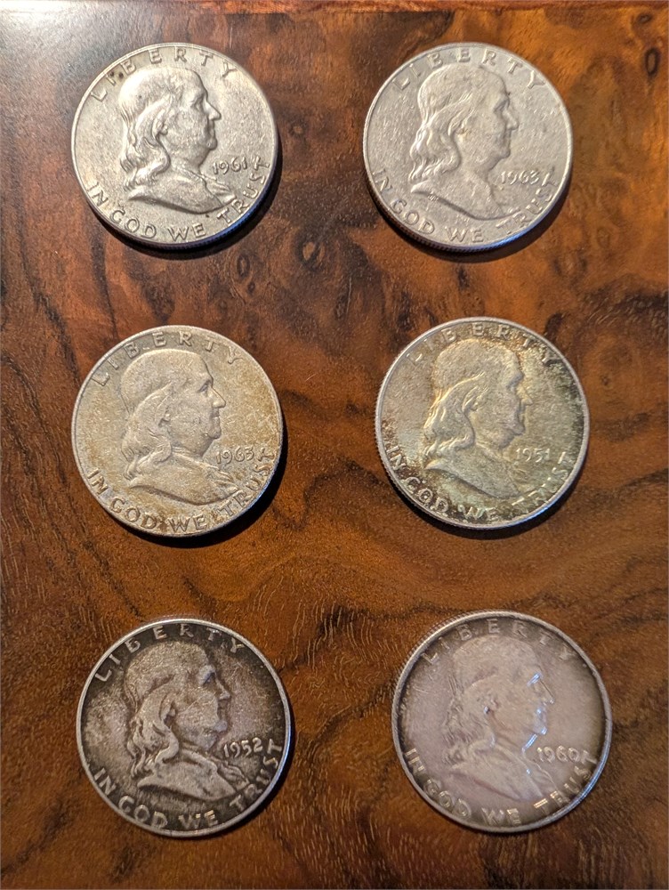 6 ~ Benjamin Franklin Half Dollar 90% Silver