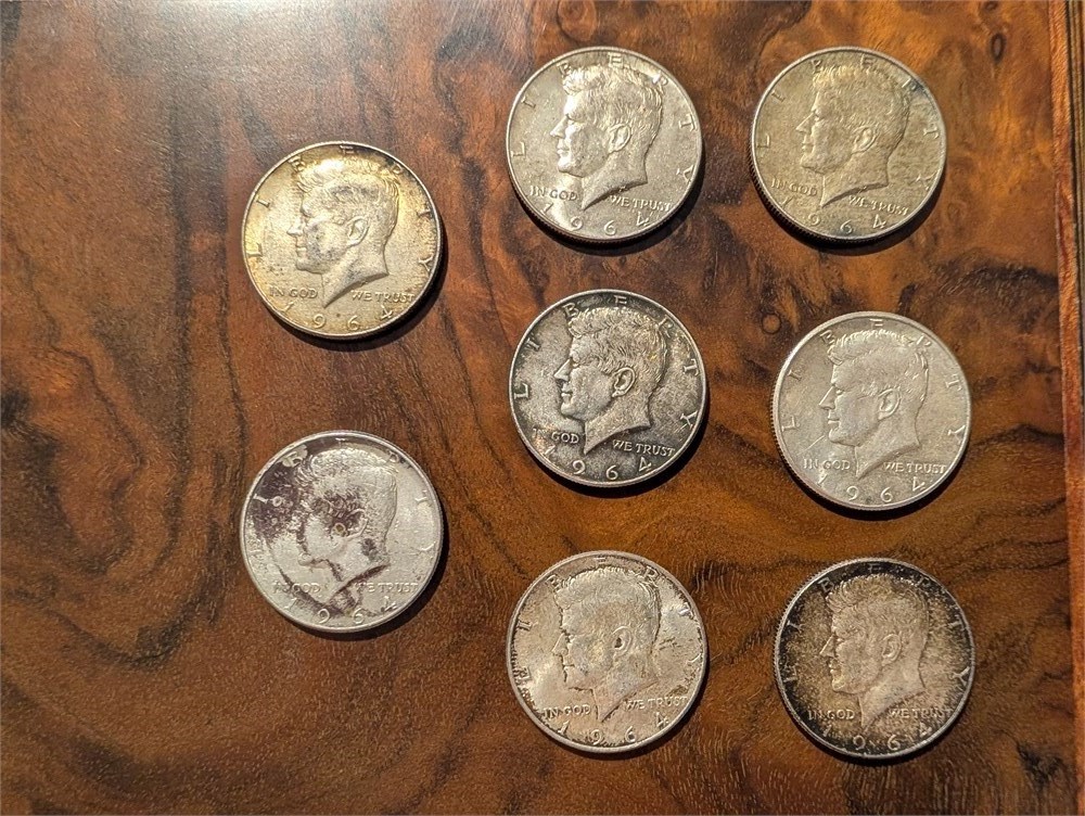 8 ~ 1964 Kennedy Half Dollar 90% Silver