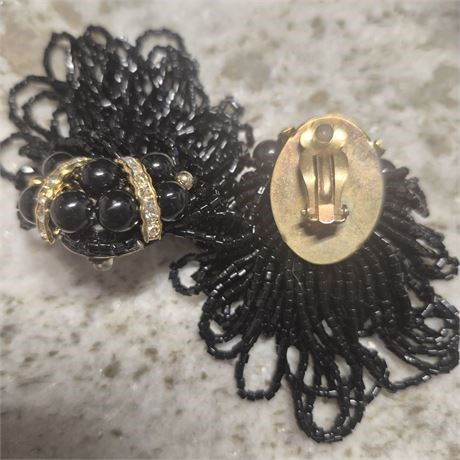 Fabulous Statement Earrings! Elegant and extravagant yet sophisticated vintage Art Deco Rhinestone Black Beaded Chandelier Statement Clip On Earrings. The closest thing I could find like these when researching were described as deco antique flapper earrings. I tried many camera angles to show how stunning these are but my photos just don’t do them justice!!! These are gorgeous!!! Vtg Art Deco 20s(?) Rhinestone Black Beaded Chandelier Statement Earring