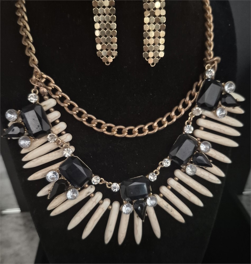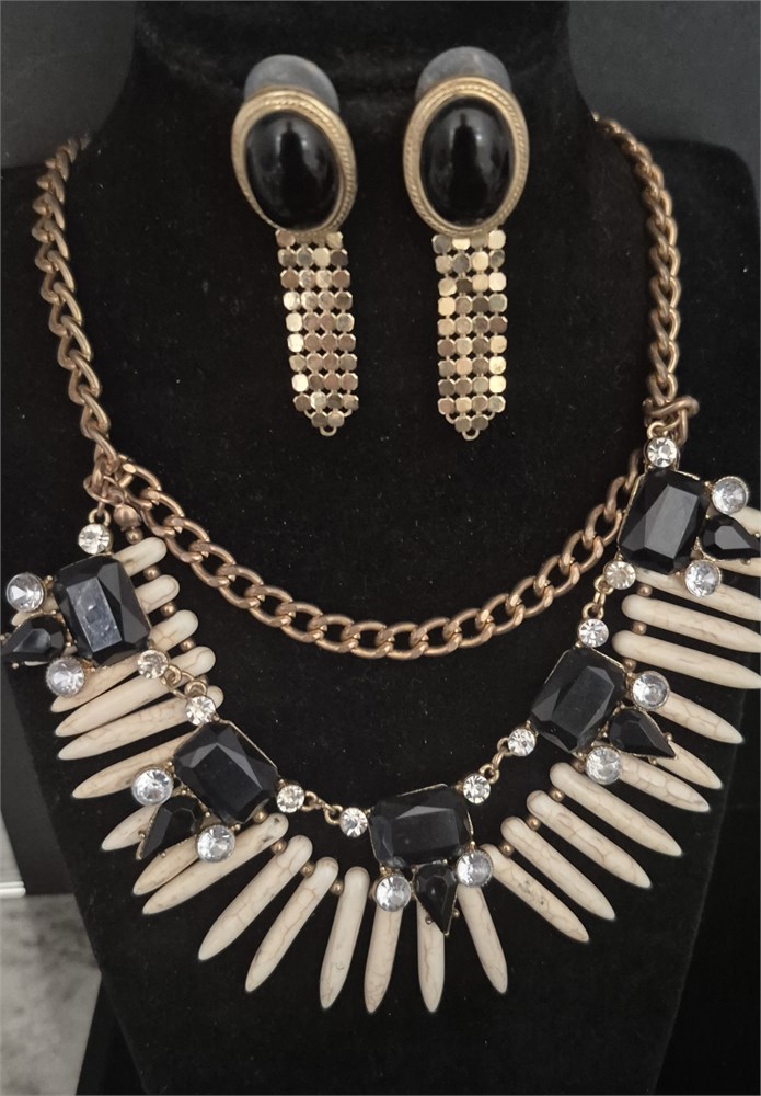 Trinket Belle Black and Ivory Statement Necklace & Earrings