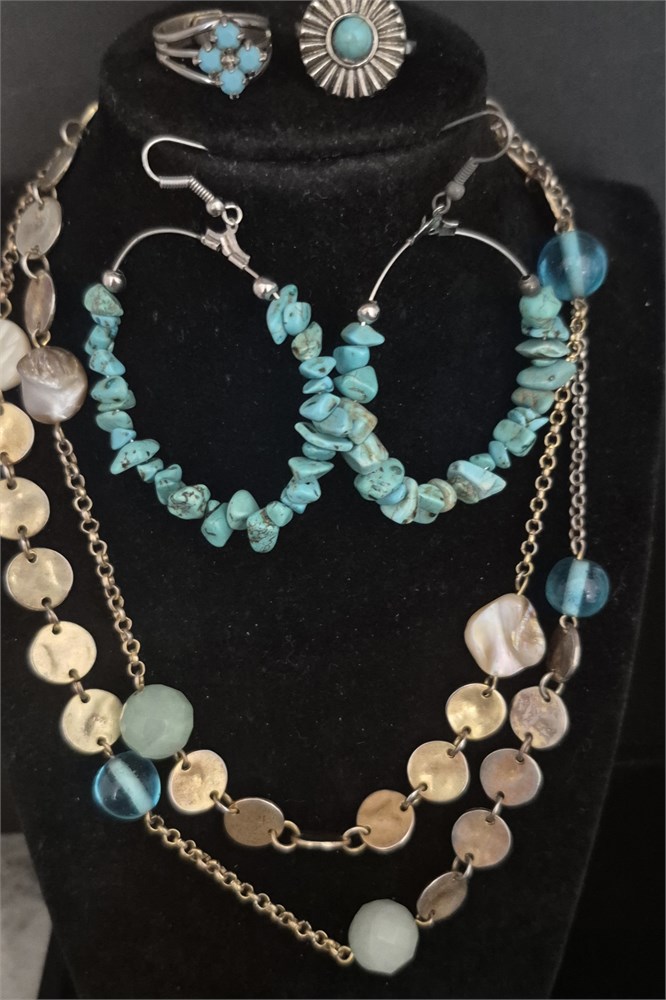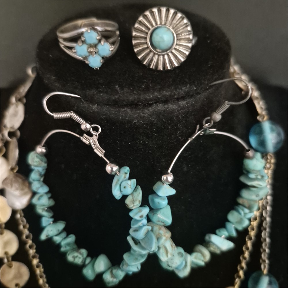 Vintage turquoise set ~ Necklace / Earrings / Rings