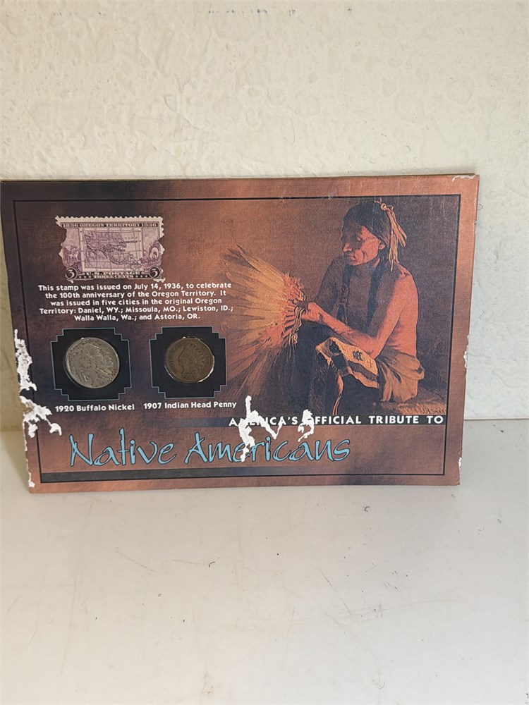 Tribute to Native Americans 1920 Buffalo Nickel Indian Head Penny Stamp Set(L)