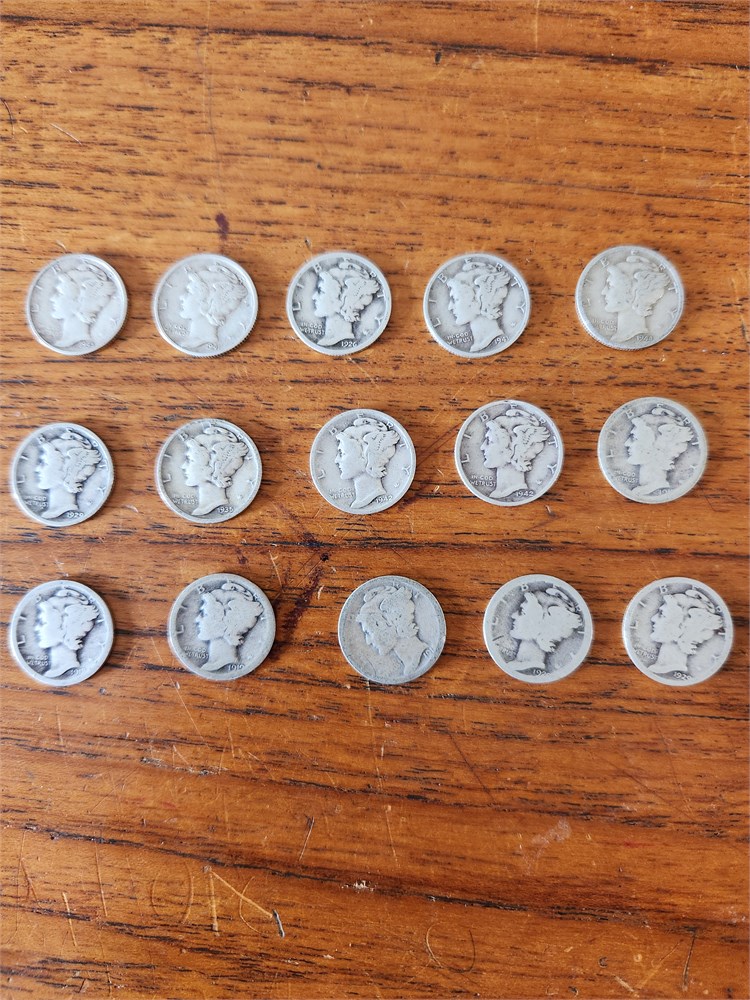 15 - Mixed Dates Mercury Dimes 90% Silver