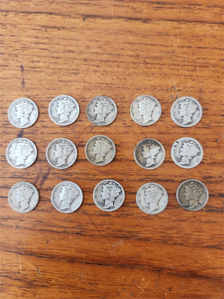 15 - Mixed Dates Mercury Dimes 90% Silver