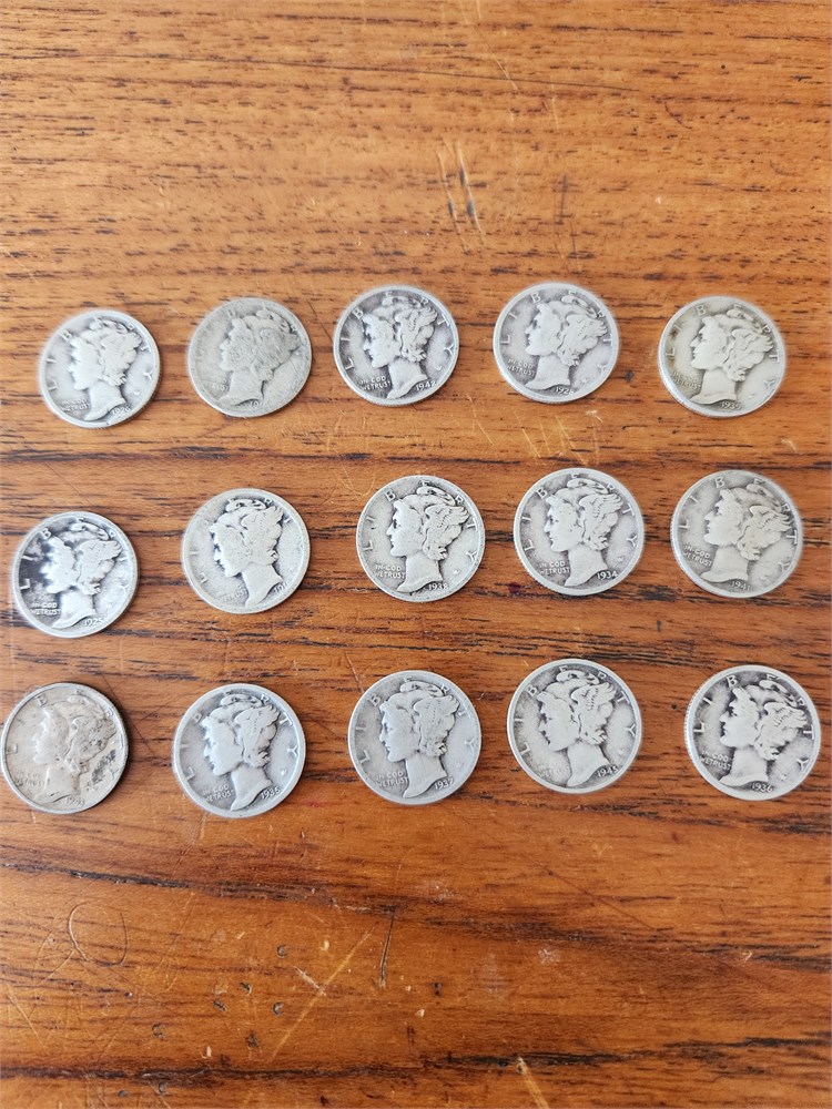 15 - Mixed Dates Mercury Dimes 90% Silver