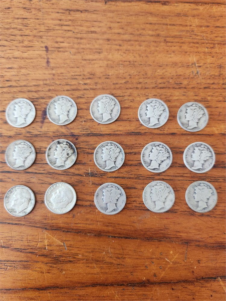15 - Mixed Dates Mercury & Roosevelt Dimes 90% Silver