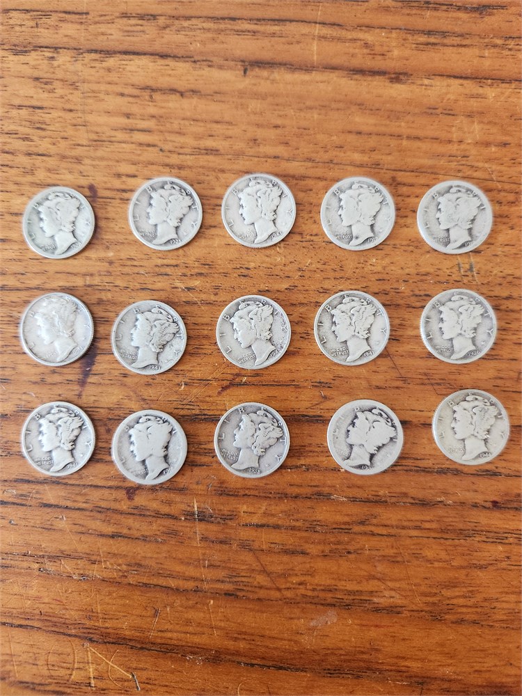 15 - Mixed Dates Mercury Dimes 90% Silver