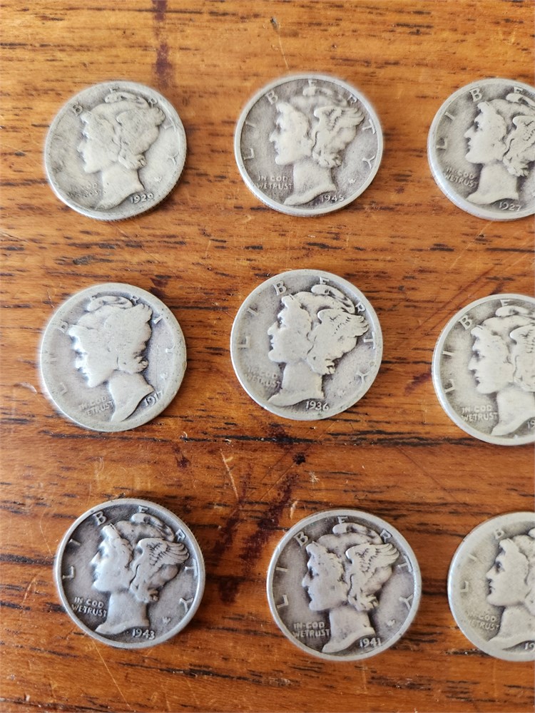 15 - Mixed Dates Mercury Dimes 90% Silver