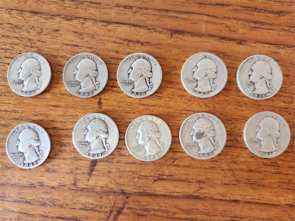 10 - Mixed Dates Washington Quarters 90 % Silver