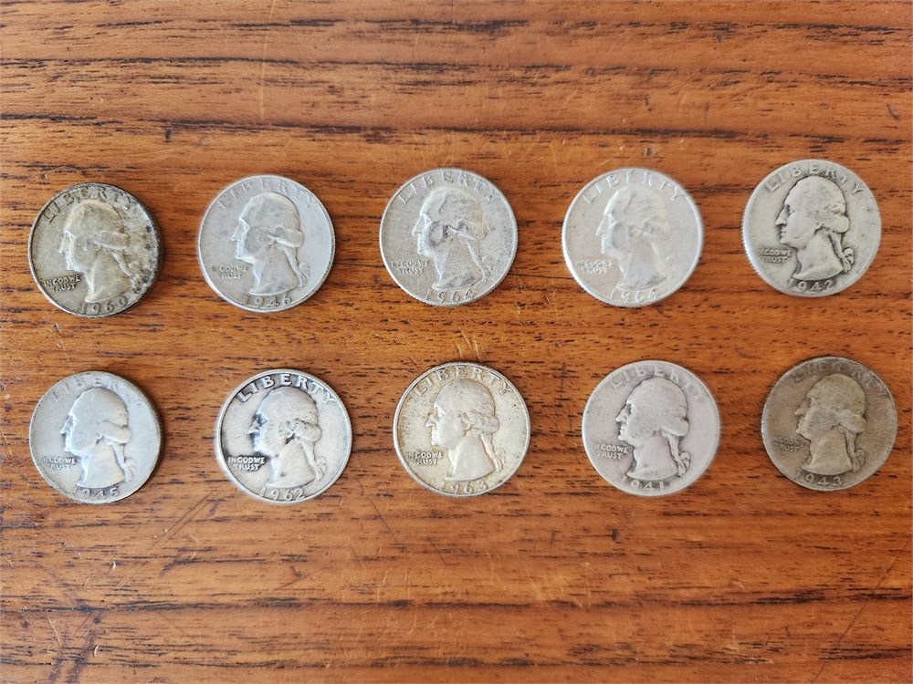 10 - Mixed Dates Washington Quarters 90 % Silver