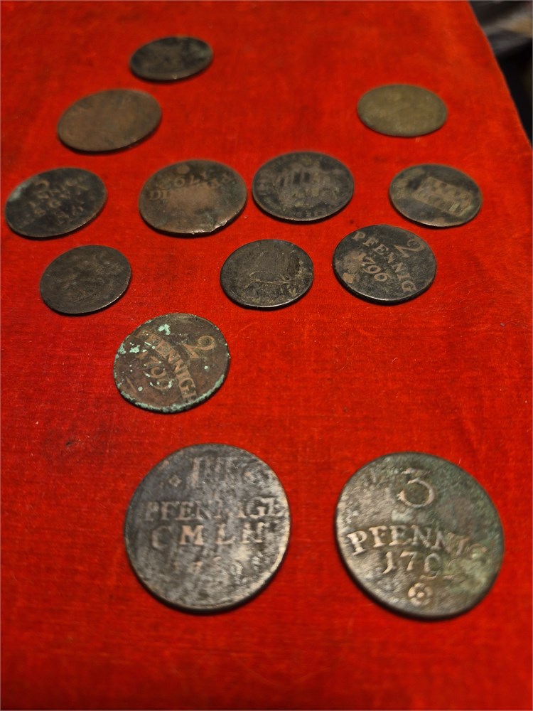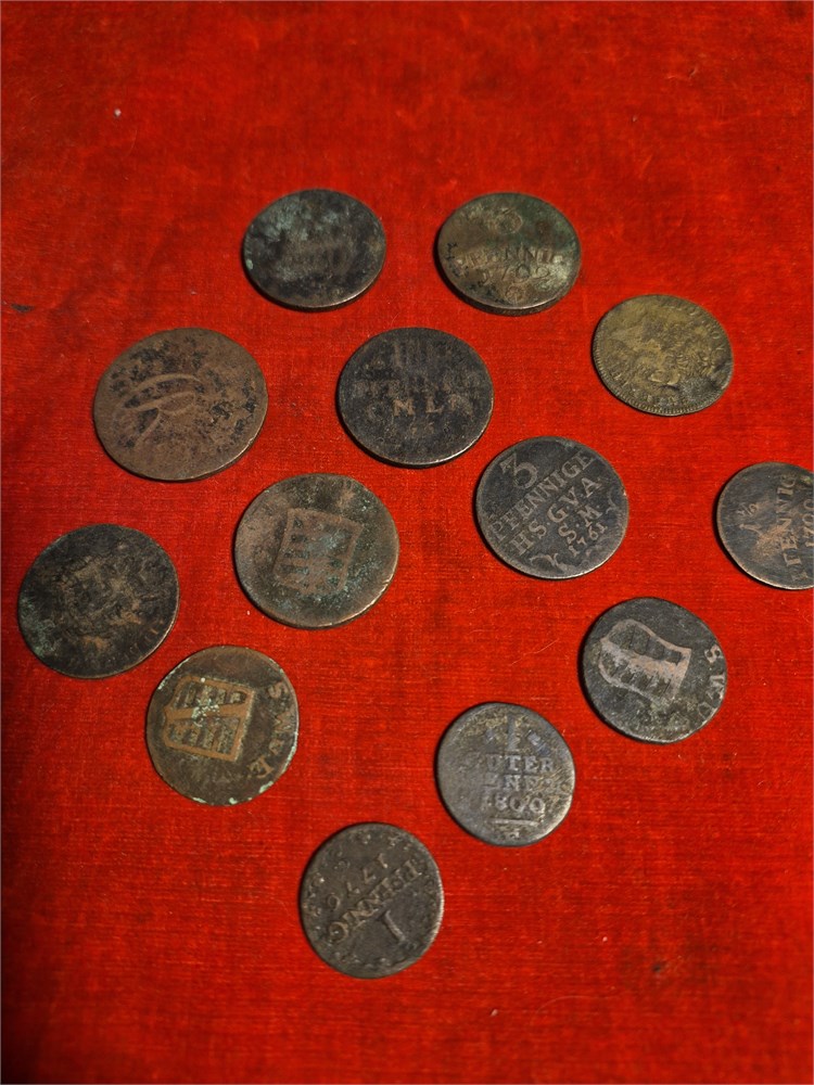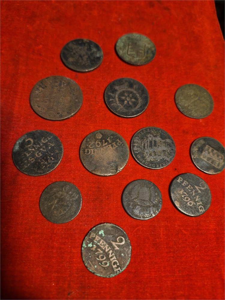 Lot of 13 foreign coins. All coins are dated in the 1700s.