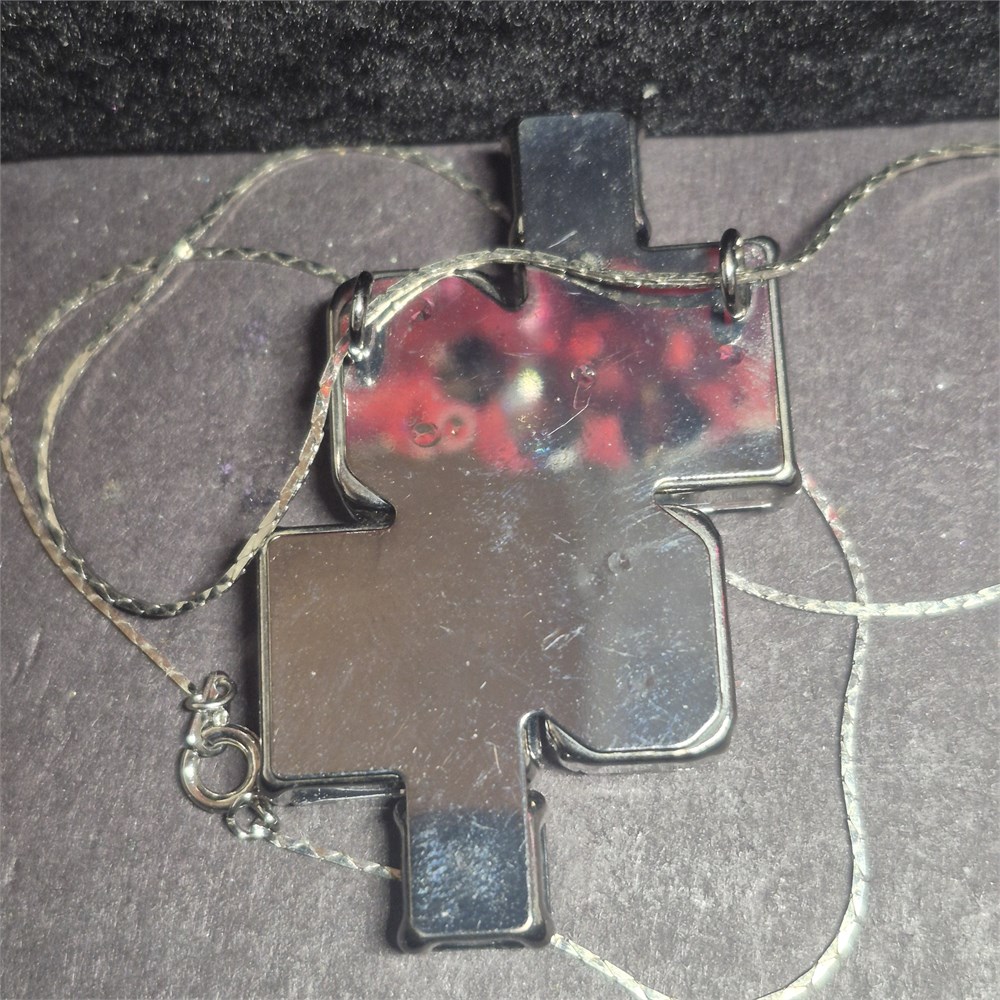 > modern square glass on thin silver snake chain