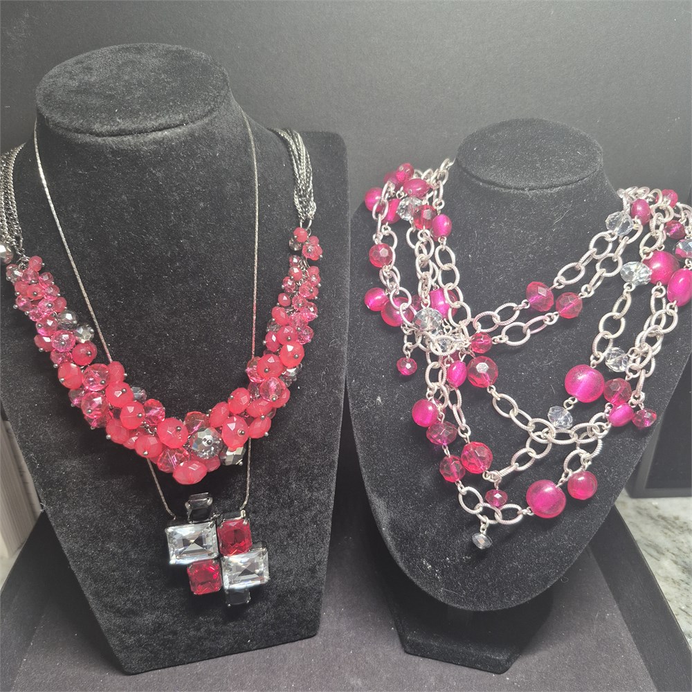 3 Vintage Fabby Raspberry Necklaces ~ marked