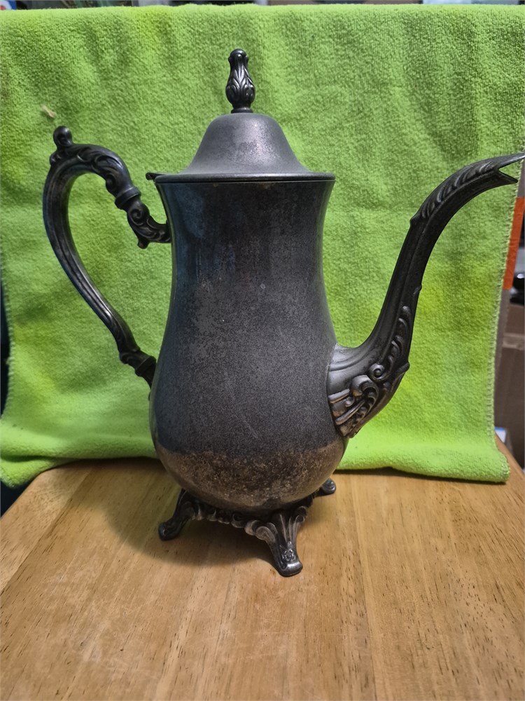 Pair of Silver plated tea pots. Larger pot is 10.5" and smaller measures 9.5"
