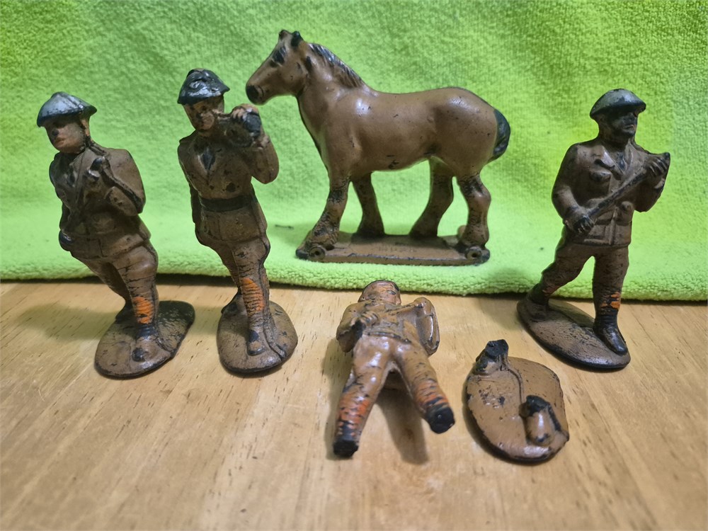 4 Vtg Rubber Toy Soldiers Auburn with Horse.