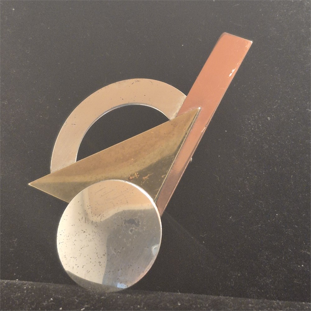 Vintage Brooch Pin Modernist Copper Brass Silver tone Jewelry