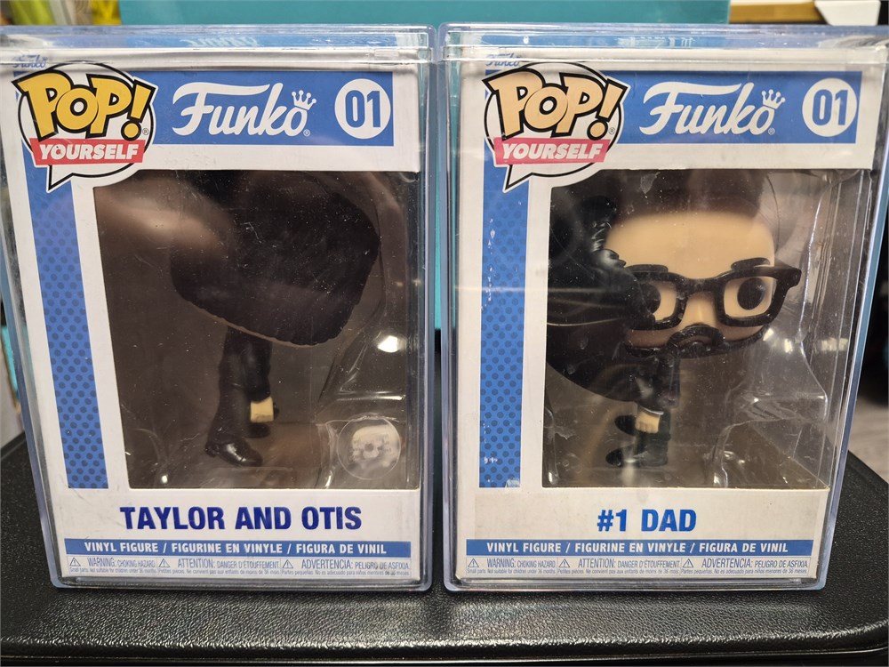 Two new inbox funko pops. Includes taylor and otis and #1 dad.