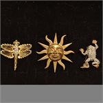 Alva Museum Replicas Gold Tone Aztec-Style Sun Brooch, Signed & Animal Broochs