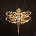 > Rhinestone DRAGON FLY, gold tone w/ stones along back, pin perfect