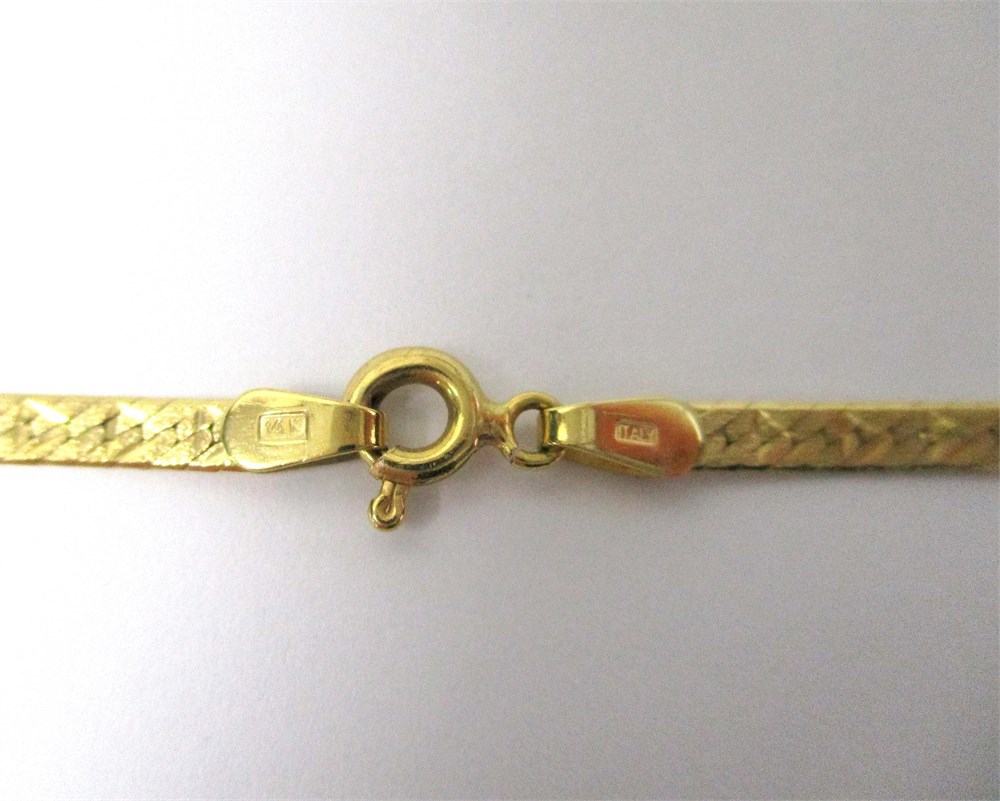 A Beautiful, 14K Yellow Gold Patterned Herringbone Necklace, 24" / 12" Drop,  Spring Ring Clasp, 8.90 grams.  Italy.