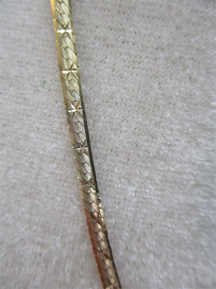 Beautiful,14K Tri-Color Patterned Herringbone Necklace, 20" / 10" Drop, 8.71 Gr.