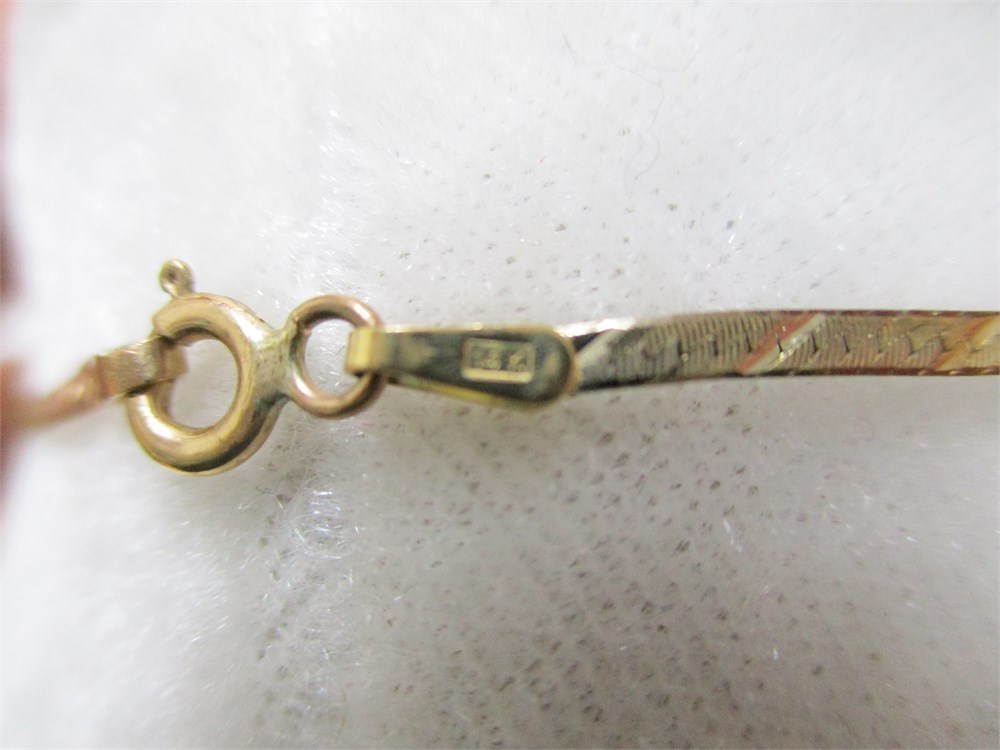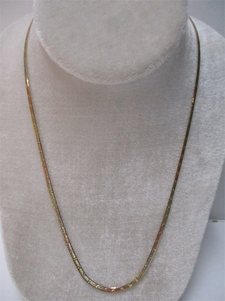 A Beautiful, 14K Tri-Color Patterned Herringbone Necklace, 20" / 10" Drop,  Spring Ring Clasp, 8.71 grams.  Italy.