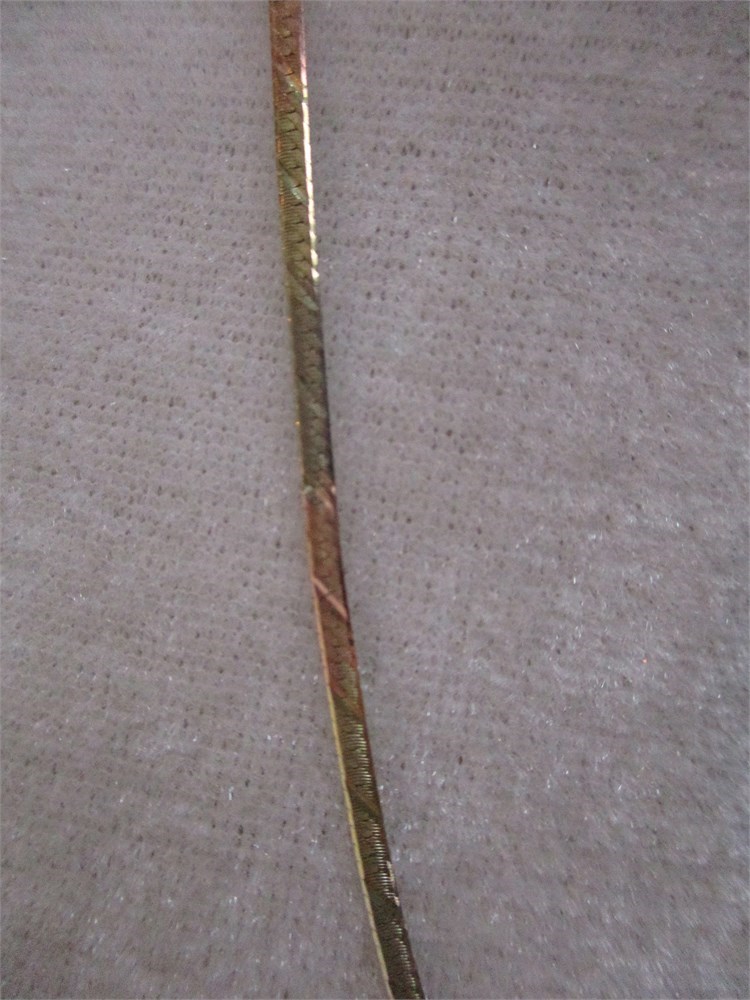 Beautiful,14K Tri-Color Patterned Herringbone Necklace, 20" / 10" Drop, 3.36 Gr.