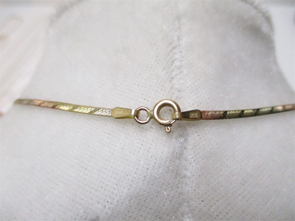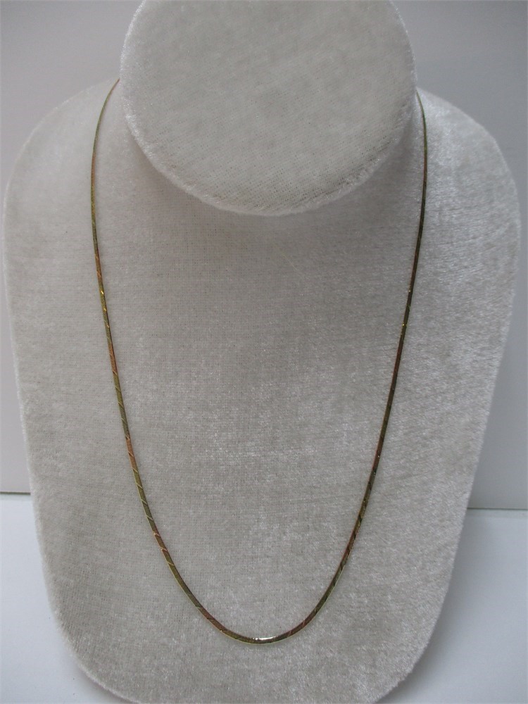 A Beautiful, 14K Tri-Color Patterned Herringbone Necklace, 20" /10" Drop,  Spring Ring Clasp, 3.36 grams.  Italy.