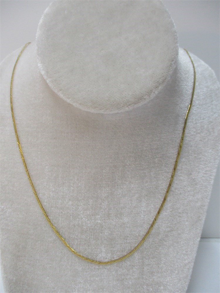 Beautiful,14K YG Patterned Herringbone Necklace, 24" / 12" Drop, 4.27 Gr.