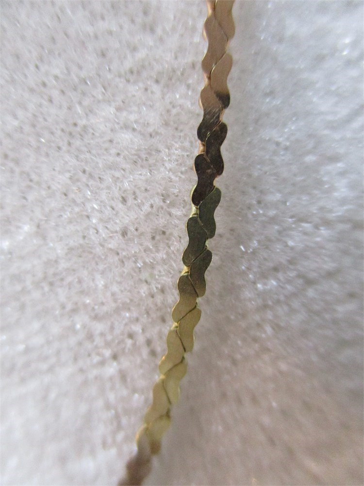 A Beautiful, 14K YG Tri-Color Heart Herringbone Necklace, 18", Spring Ring Clasp, 3.96 grams.  Italy