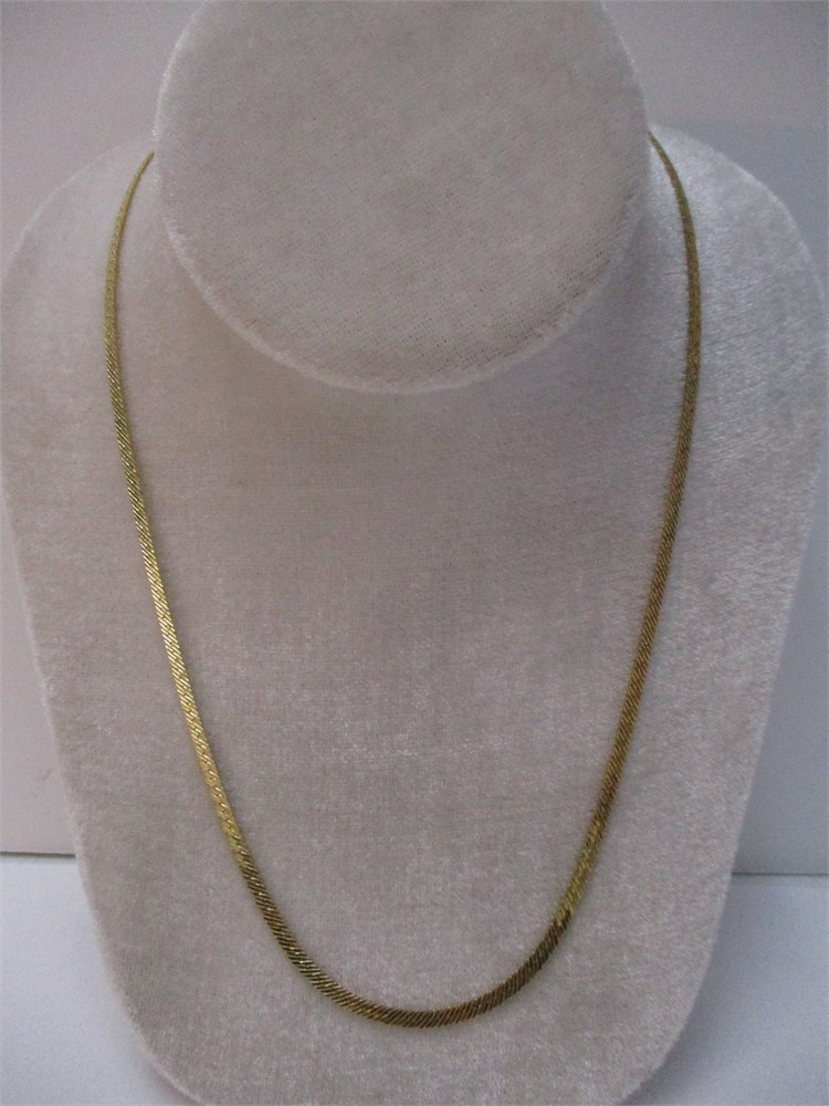 Beautiful,14K YG Herringbone Necklace, 19" / 9.5" Drop, 17.49 Gr.