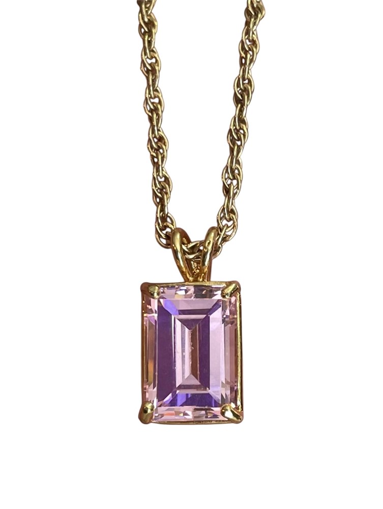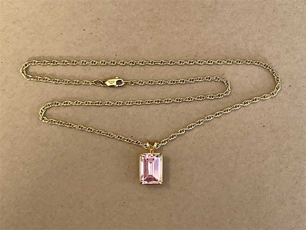 Gold Over Sterling Necklace with Pink Pendant ~ 10.0 grams