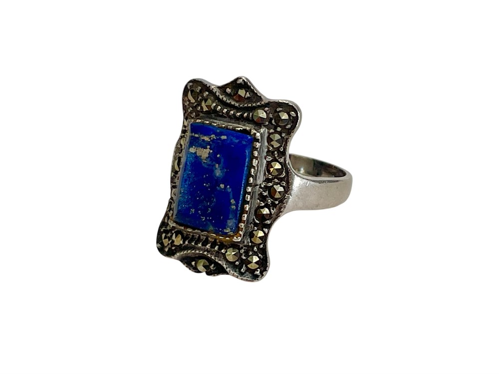 Lapis Lazuli and Marcasite Ring, Sterling Silver ~ 4.1 grams