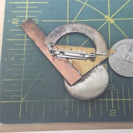Vintage Brooch Pin Modernist Copper Brass Silver tone Jewelry