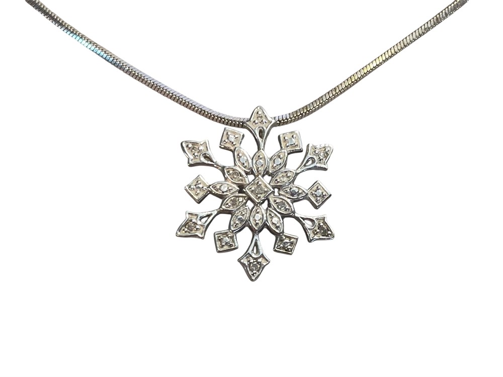 Sterling Silver Snowflake Pendant with Chain ~ 2.9 grams