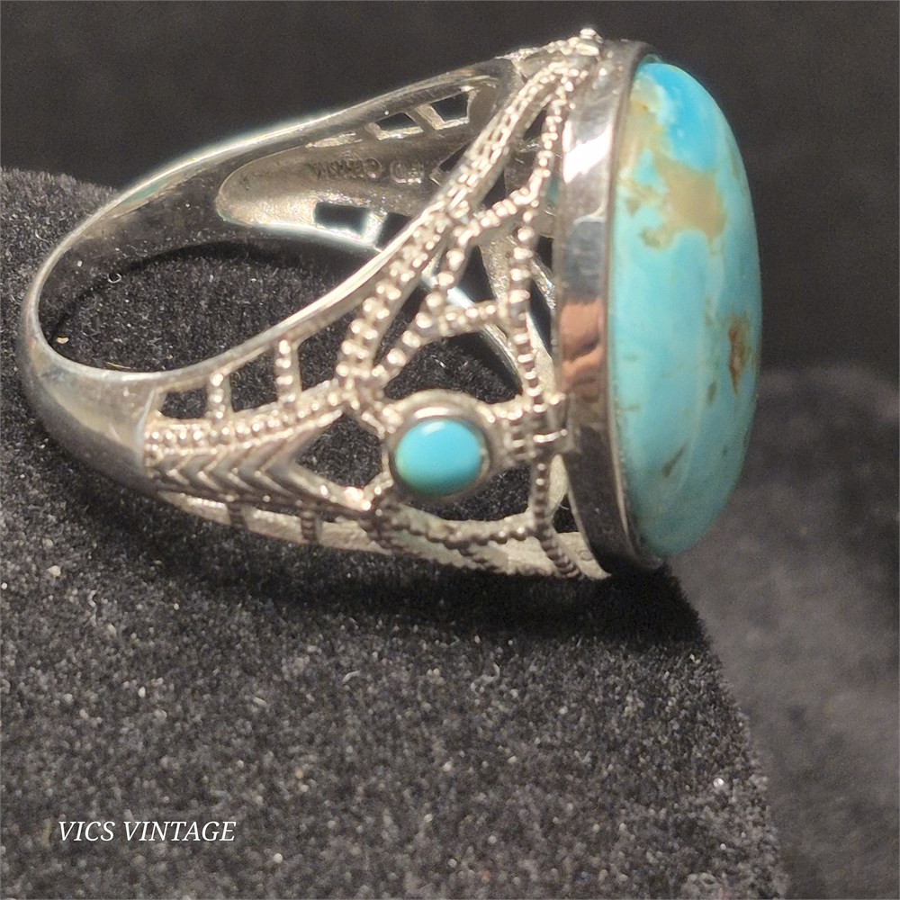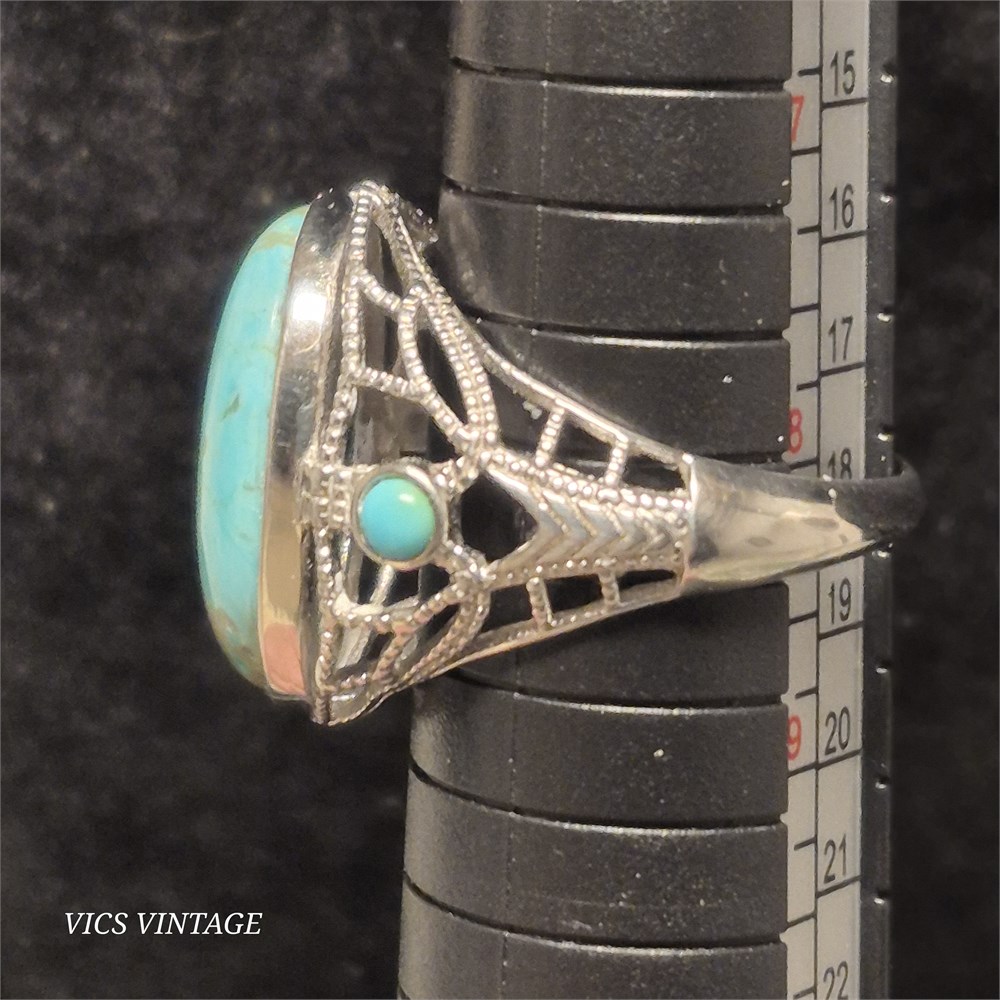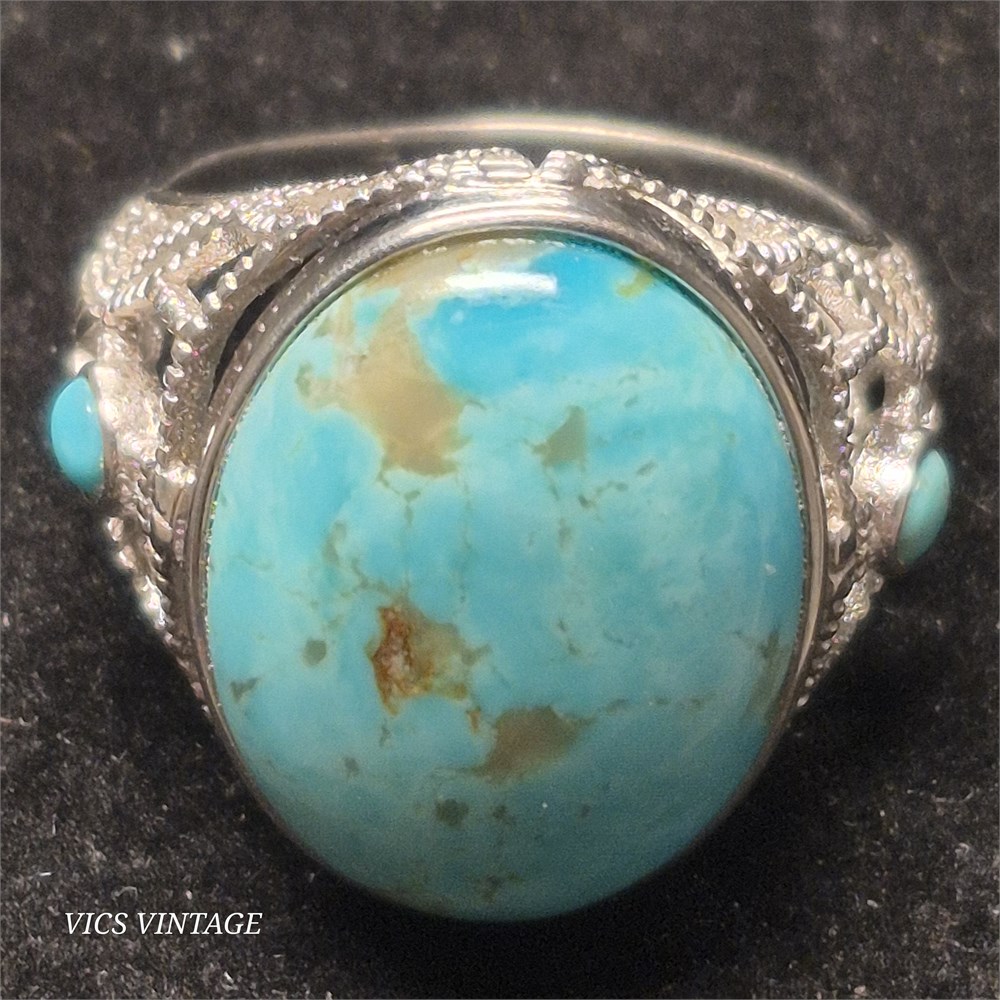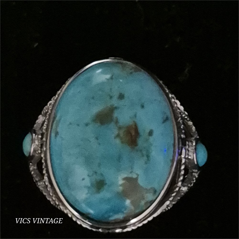 Tourquoise RING set in silvertone setting [VC]